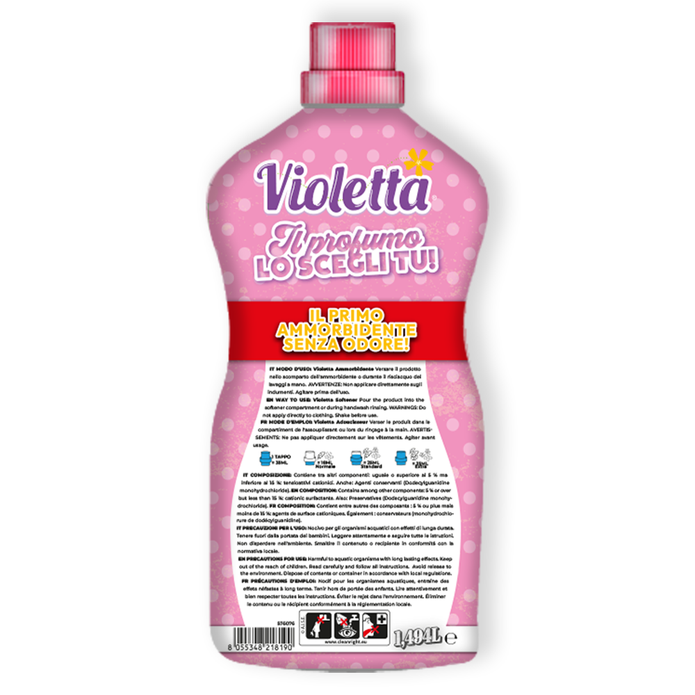 Violetta rivoluziona il modo di intendere la cura del bucato con il primo ammorbidente senza odore, pensato per chi desidera una fragranza su misura. La sua formula neutra ammorbidisce i tessuti senza interferire con la profumazione, lasciando a te la libertà di scegliere il tuo aroma preferito.